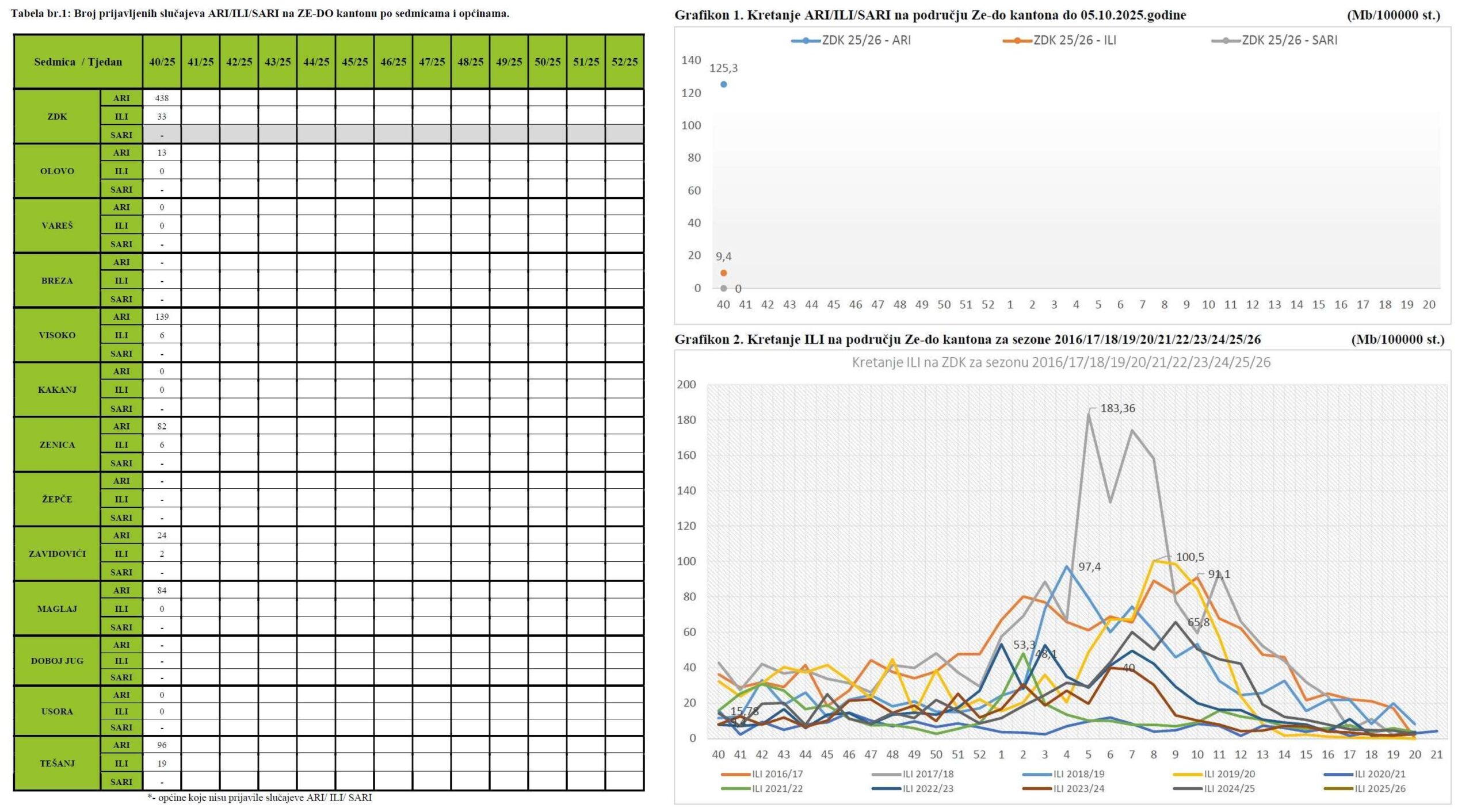 NovostiSvjetski dan mentalnog zdravlja – 10. oktobar10. Oktobra 2025.Tešanj: Izvještaj o ispitivanju alergenog polena u zraku od 01.10. do 07.10. 2025. godine9. Oktobra 2025.Danas je Svjetski dan vida: INZ podsjeća na važnost očuvanja vida kod djece9. Oktobra 2025.Počela sezona nadzora nad respiratornim virusima u ZDK, za ovu sezonu naručeno 5.200 doza vakcina protiv gripe8. Oktobra 2025.Nadzor nad gripom u ZDK – pregled 40. sedmice 2025.7. Oktobra 2025.Zenica: Izvještaj o ispitivanju alergenog polena u zraku od 29.09. do 05.10. 2025. godine7. Oktobra 2025.Visoko: Izvještaj o ispitivanju alergenog polena u zraku od 29.09. do 05.10. 2025. godine7. Oktobra 2025.Otvoren Sajam “Jesen u Visokom” uz bogatu ponudu domaćih proizvoda6. Oktobra 2025.Naši partneri