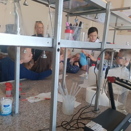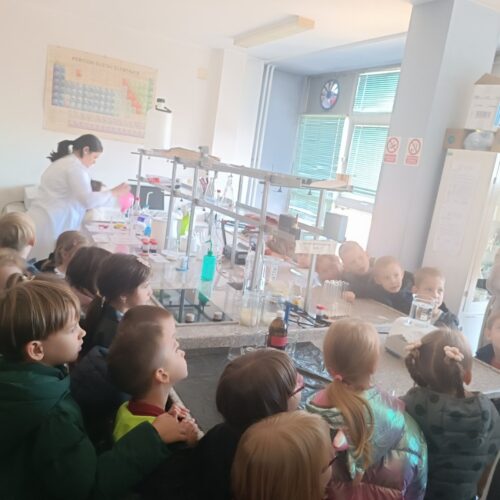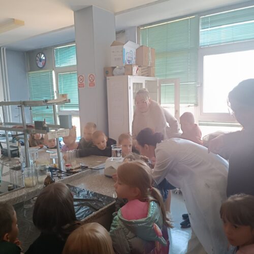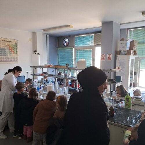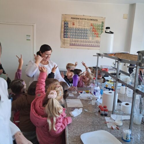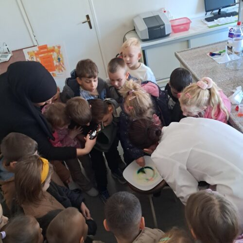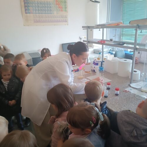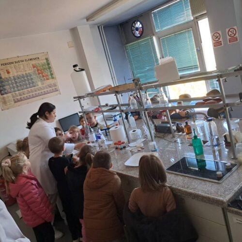 Dio posjete bio je obilazak laboratorije, gdje su djeca mogla vidjeti kako vizuelno izgledaju neke od hemijskih reakcija.