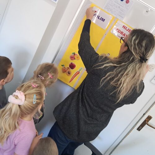 Kroz igru, razgovor i demonstracije, mališani su saznali koliko je važno svakodnevno prati zube, jesti voće i povrće, redovno prati ruke, nositi udobnu obuću i brinuti o svojim stopalima.