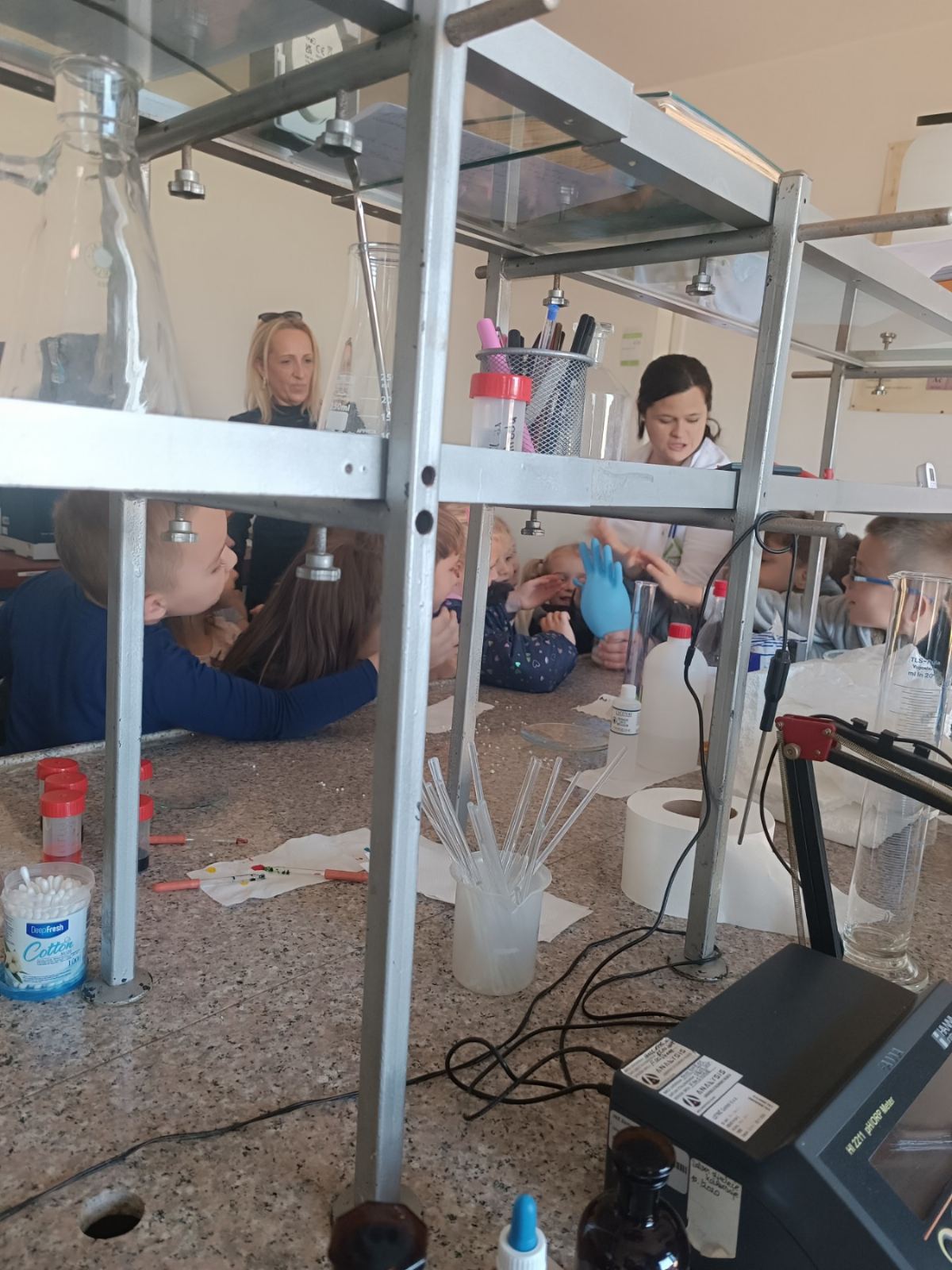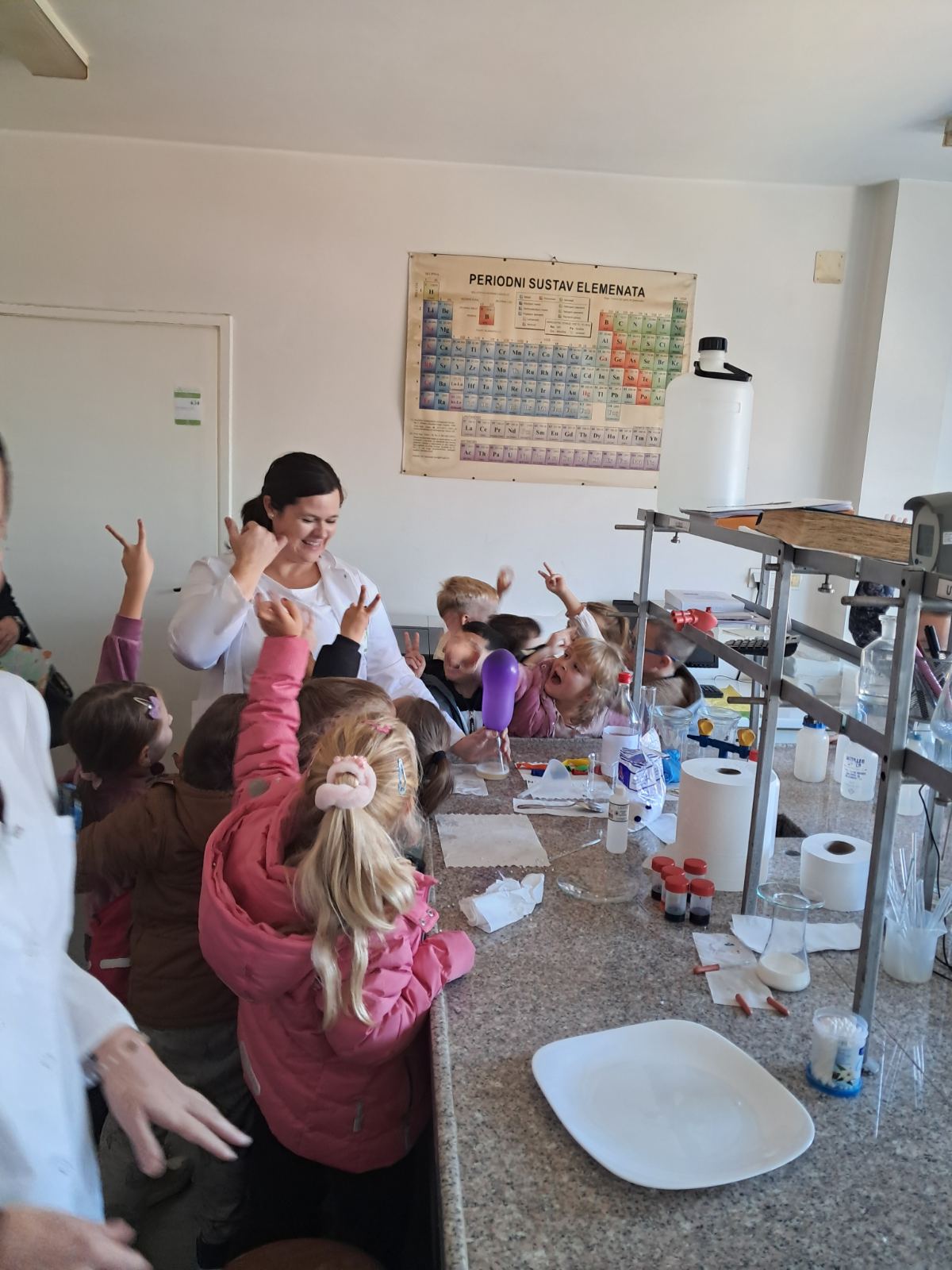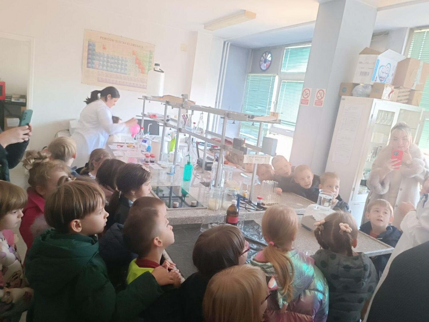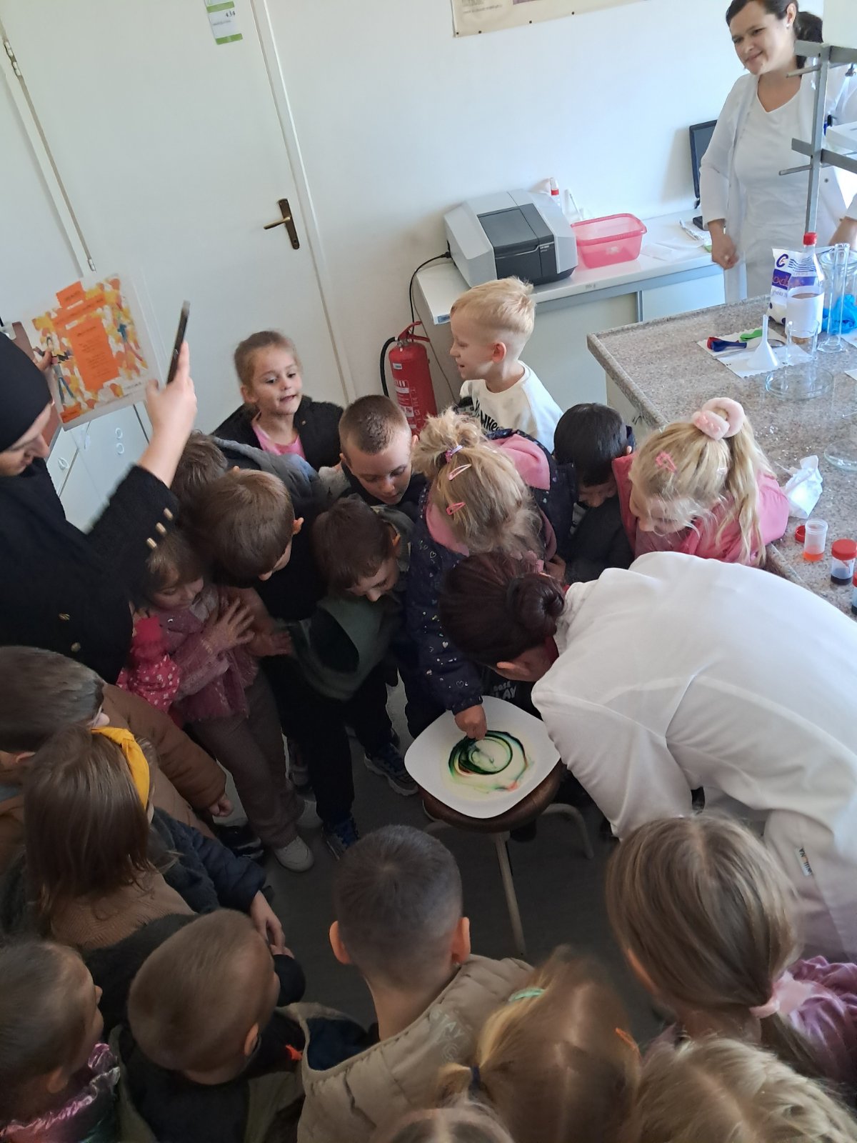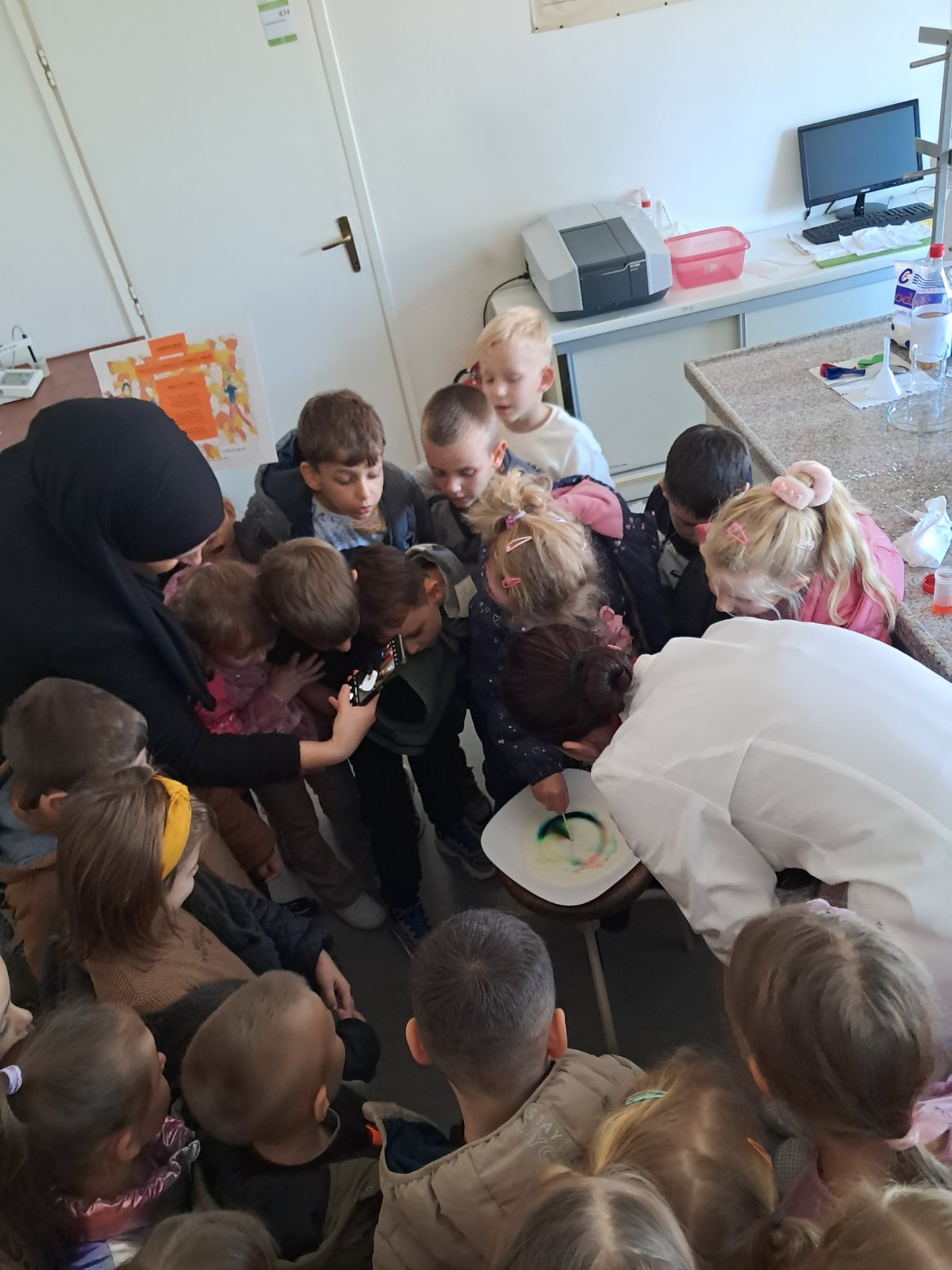 Dio posjete bio je obilazak laboratorije, gdje su djeca mogla vidjeti kako vizuelno izgledaju neke od hemijskih reakcija.