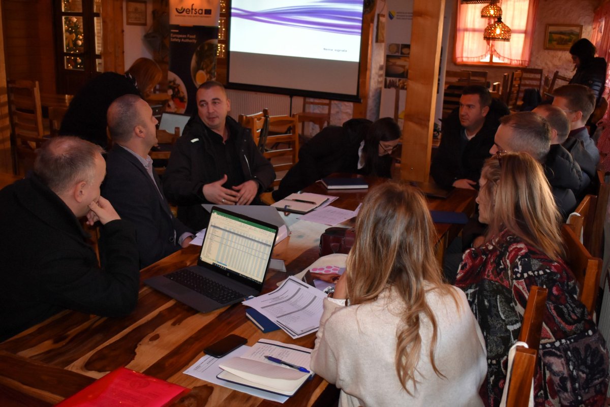 Učesnici radionice također su identificirali ključne probleme i dali preporuke za unaprjeđenje procesa prikupljanja i dostavljanja podataka o laboratorijskim analizama hrane i bolestima koje se prenose putem hrane. Ovi podaci veoma su značajni za identifikaciju zdravstvenih i sigurnosnih rizika, procjenu izloženosti potrošača rizicima porijeklom iz hrane, izradu planova službenih kontrola te ispunjavanje obaveza naše zemlje u procesu pristupanja Evropskoj uniji. (Foto FSA BIH)