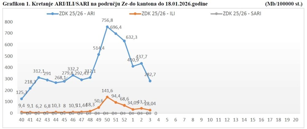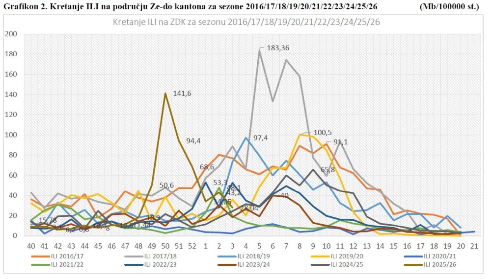 Od 40. sedmice 2025 godine, započeo je epidemioški nadzor nad kretanjem gripe u Zeničko-dobojskom kantonu za sezonu 2025/2026.