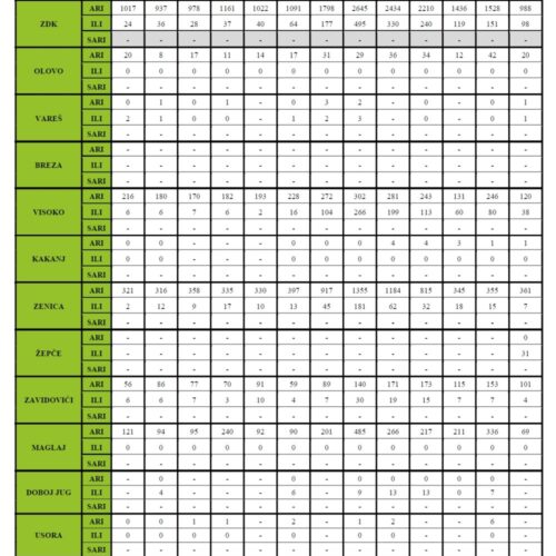 Tokom 03. sedmice 2026. god. nije bilo prijavljenih hospitaliziranih SARI slučajeva.