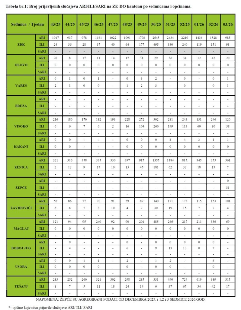 Nadzor nad gripom u ZDK – pregled 03. sedmice 2026.