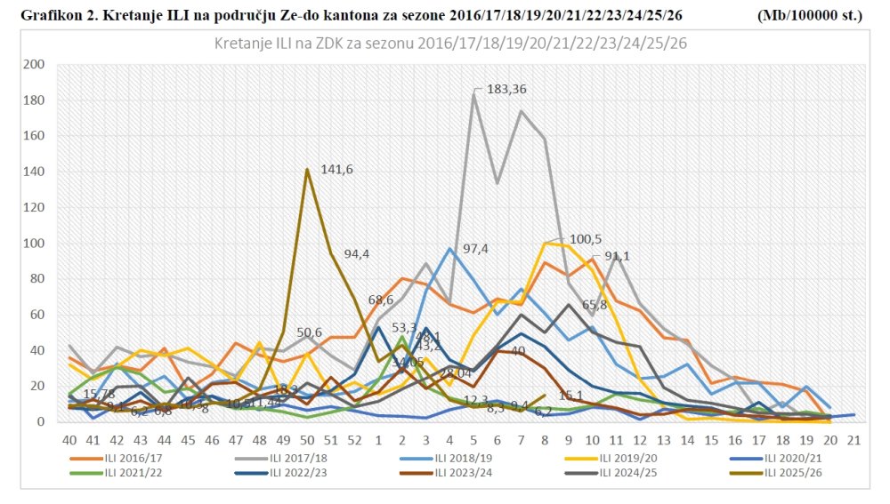 Od 40. sedmice 2025 godine, započeo je epidemioški nadzor nad kretanjem gripe u Zeničko-dobojskom kantonu za sezonu 2025/2026.