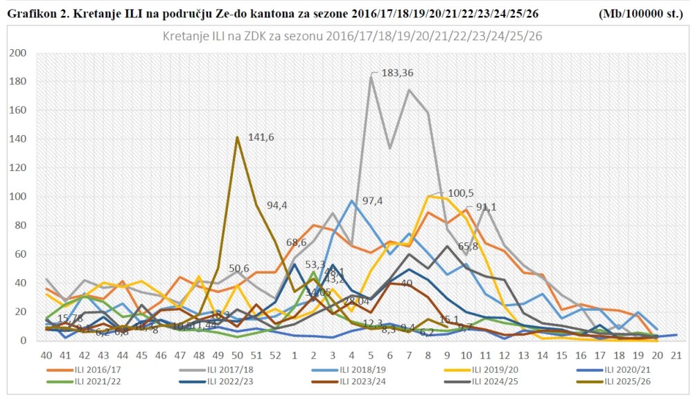 Od 40. sedmice 2025 godine, započeo je epidemioški nadzor nad kretanjem gripe u Zeničko-dobojskom kantonu za sezonu 2025/2026.