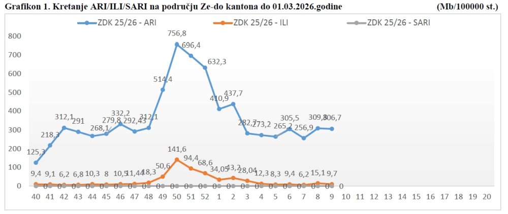 Nadzor nad gripom u ZDK – pregled 09. sedmice 2026.