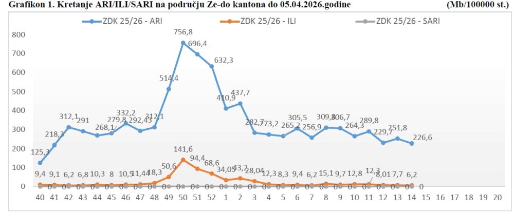 Tokom 14. sedmice 2026. god. nije bilo prijavljenih hospitaliziranih SARI slučajeva.