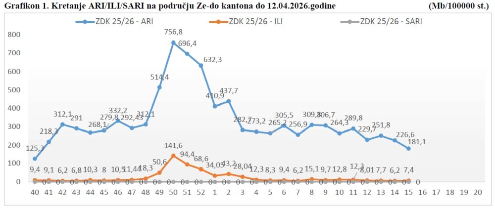 Nadzor nad gripom u ZDK – pregled 15. sedmice 2026.