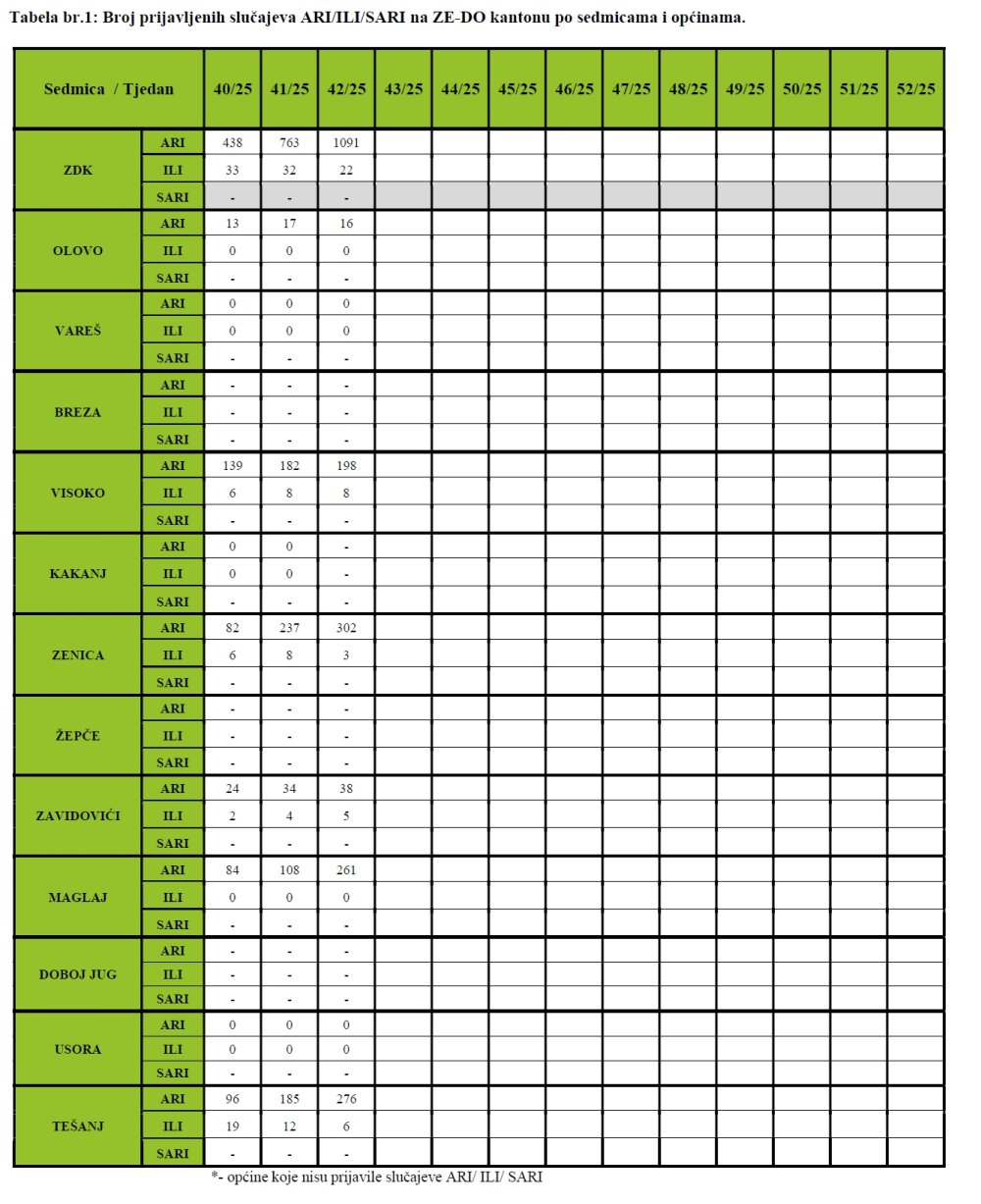 Od 40. sedmice 2025 godine, započeo je epidemioški nadzor nad kretanjem gripe u Zeničko-dobojskom kantonu za sezonu 2025/2026.