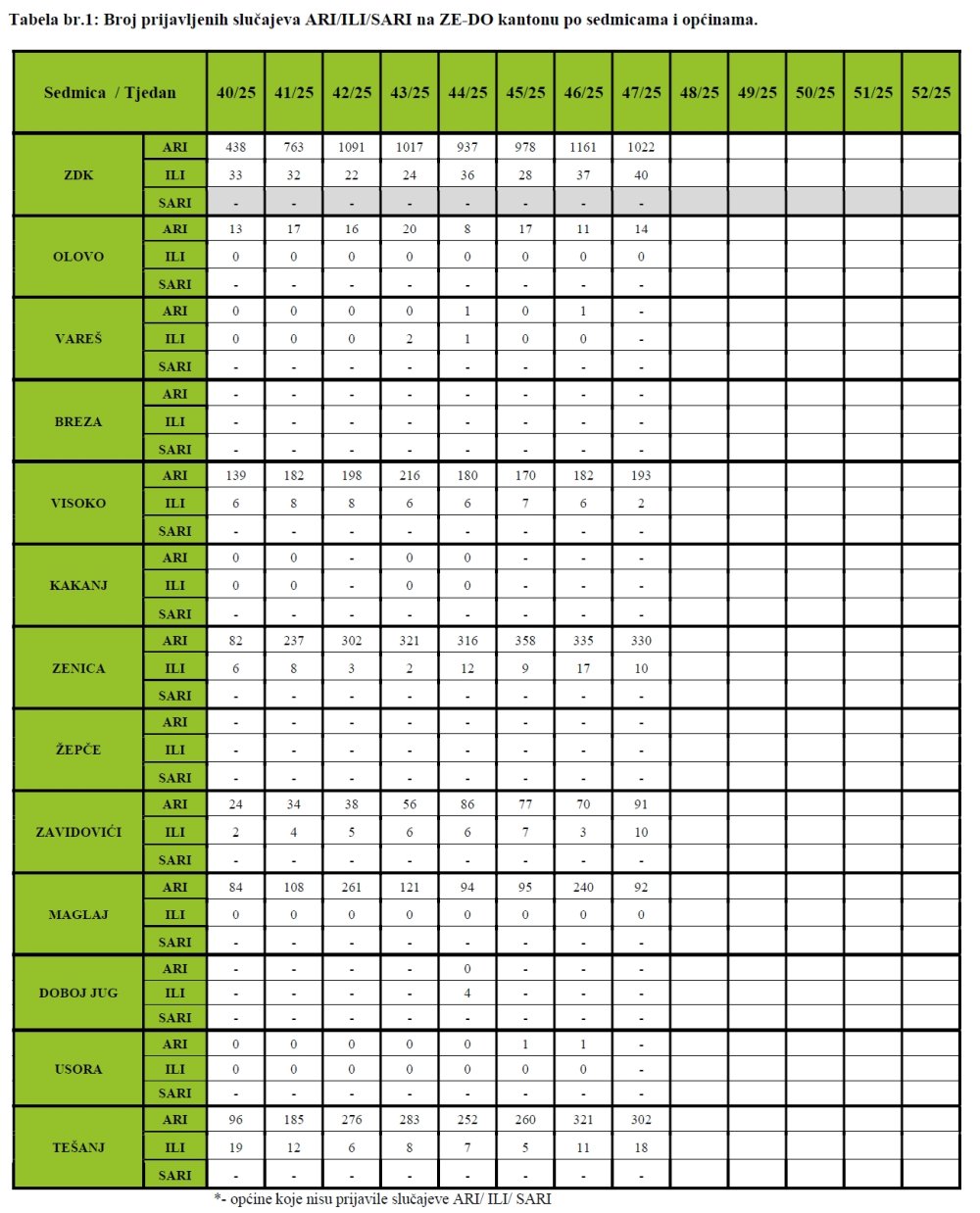 Od 40. sedmice 2025 godine, započeo je epidemioški nadzor nad kretanjem gripe u Zeničko-dobojskom kantonu za sezonu 2025/2026.
