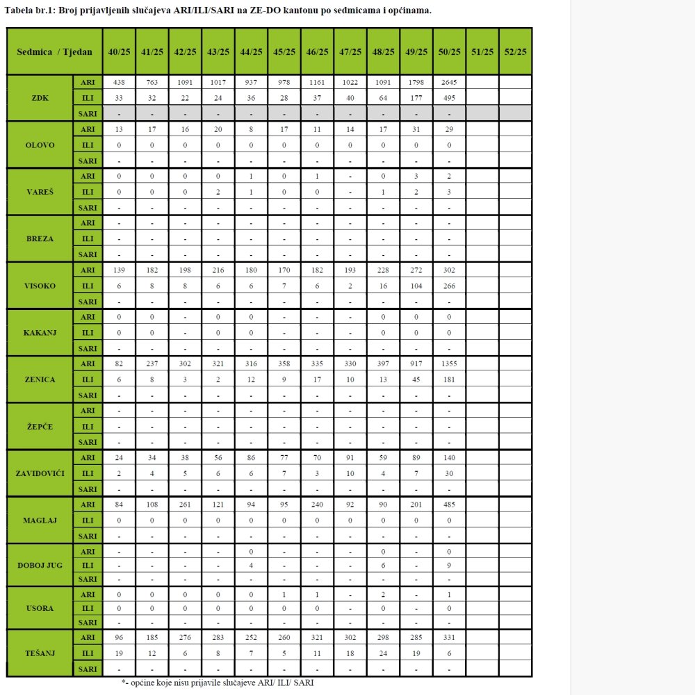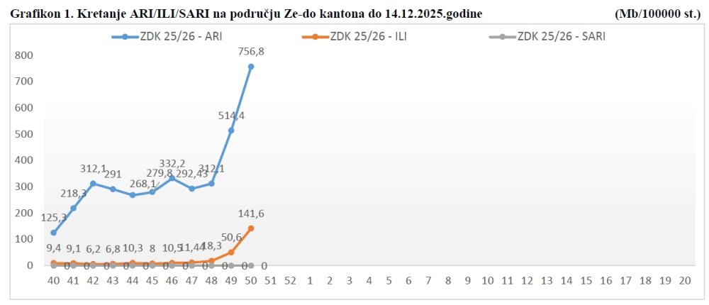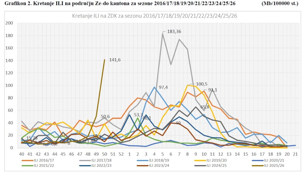Od 40. sedmice 2025 godine, započeo je epidemioški nadzor nad kretanjem gripe u Zeničko-dobojskom kantonu za sezonu 2025/2026.