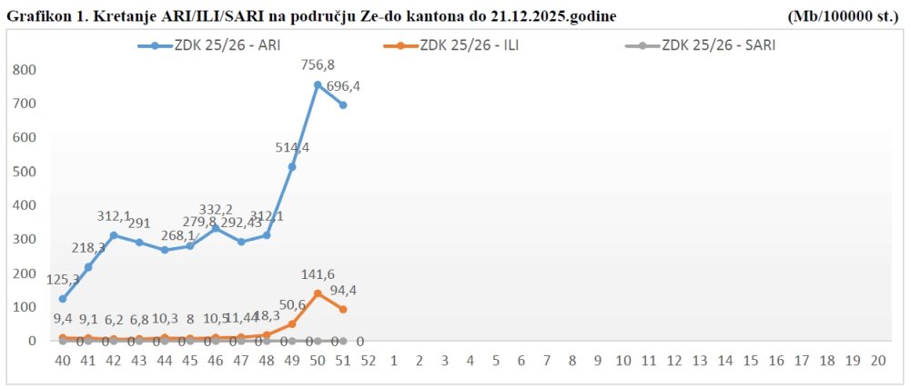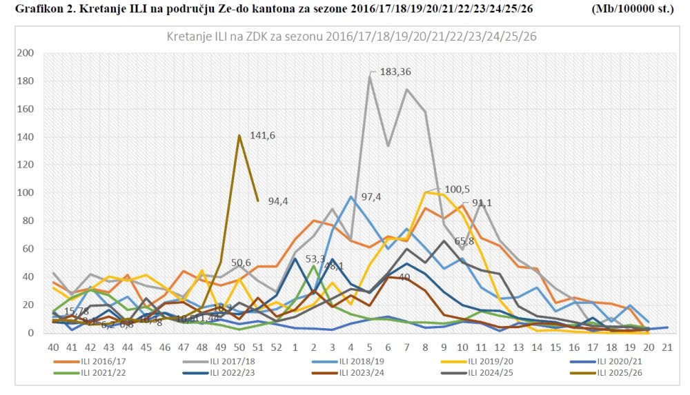 Od 40. sedmice 2025 godine, započeo je epidemioški nadzor nad kretanjem gripe u Zeničko-dobojskom kantonu za sezonu 2025/2026.