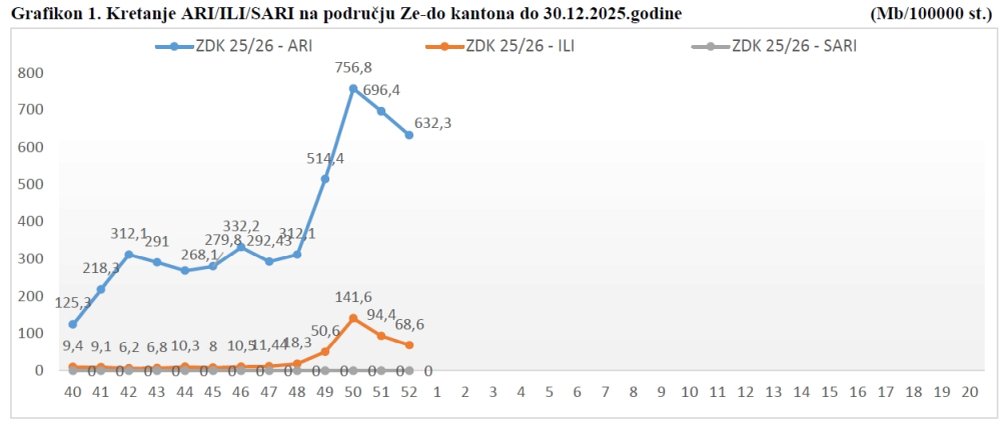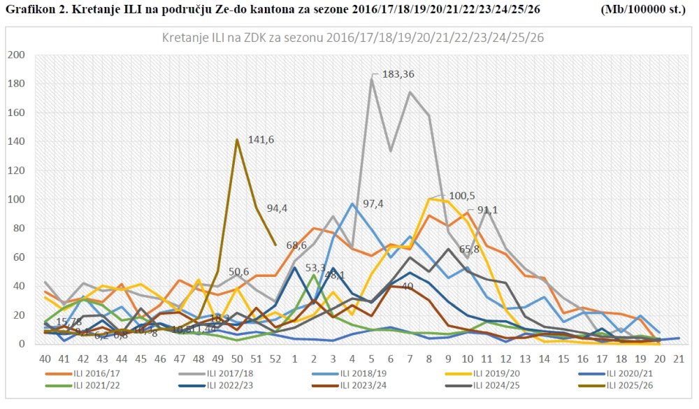 Od 40. sedmice 2025 godine, započeo je epidemioški nadzor nad kretanjem gripe u Zeničko-dobojskom kantonu za sezonu 2025/2026.