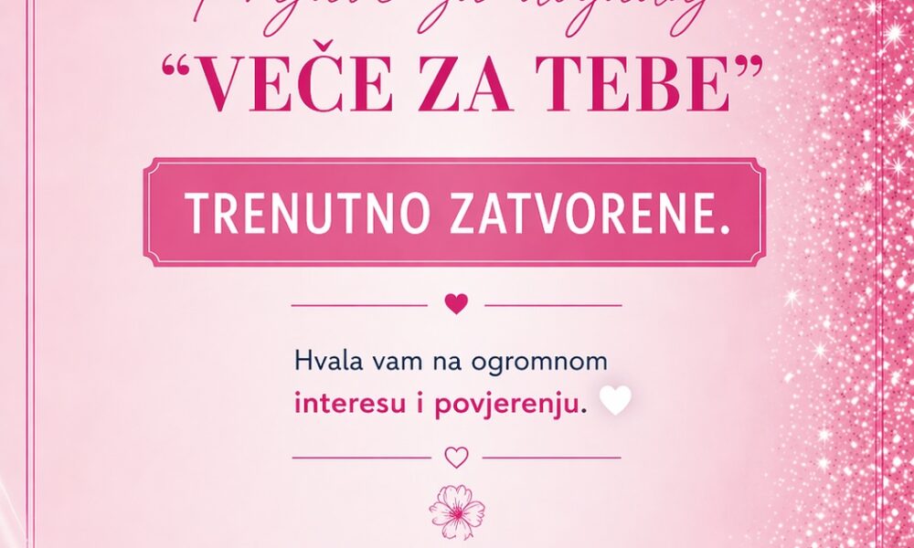 Prijave za događaj “VEČE ZA TEBE” TRENUTNO ZATVORENE.